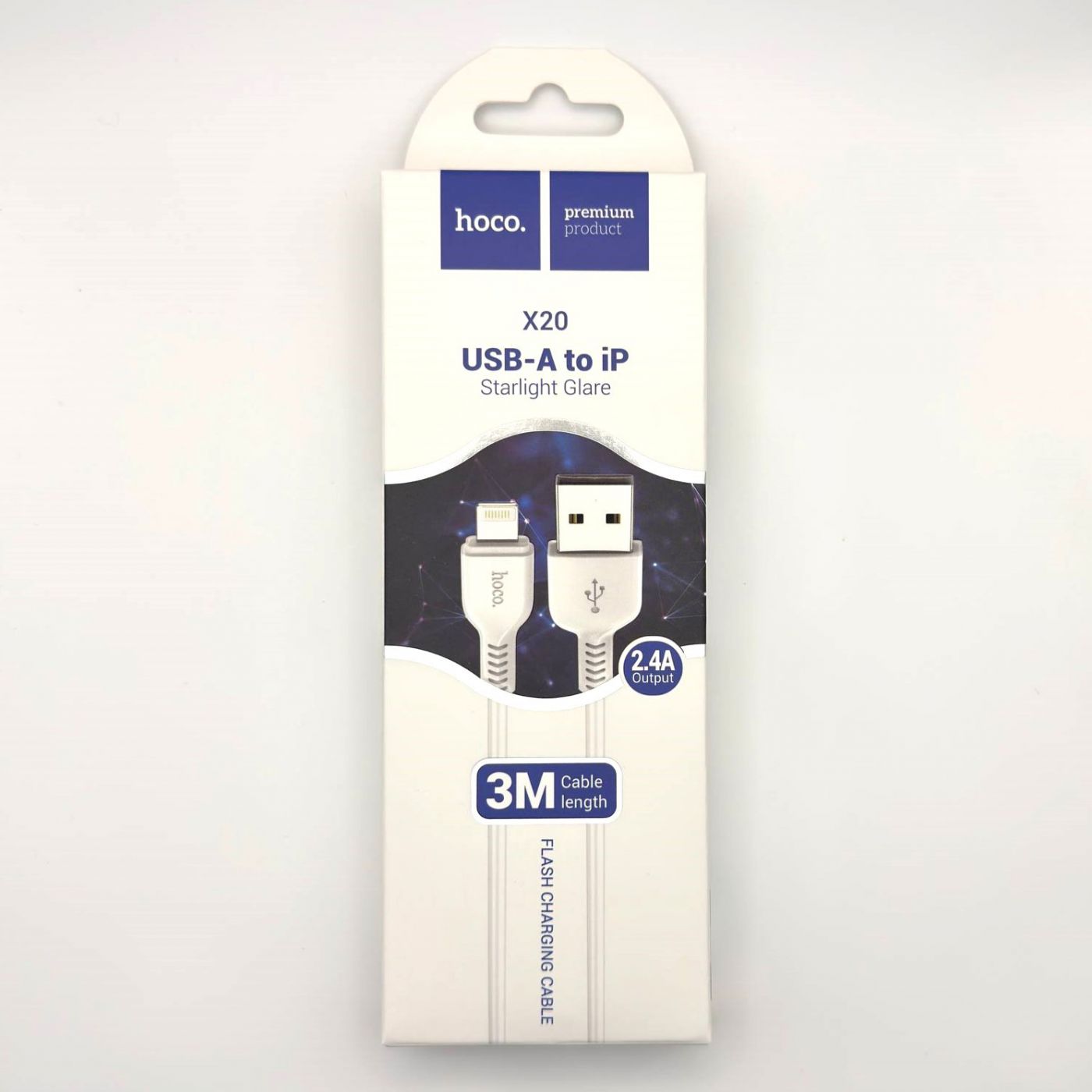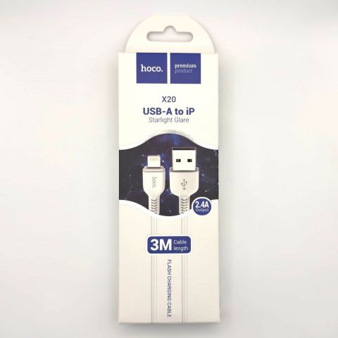 Кабель USB - Lightning Hoco X20 (2.4А, 3 м) Белый