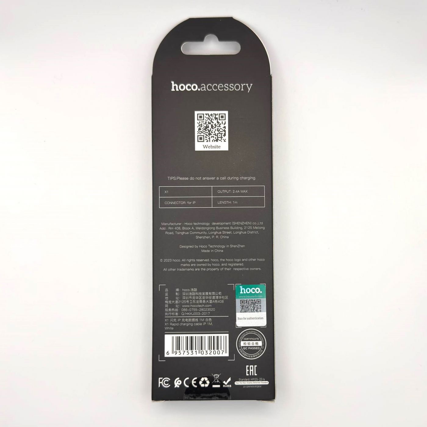 Кабель USB - Lightning Hoco X107 (2.4А) Белый