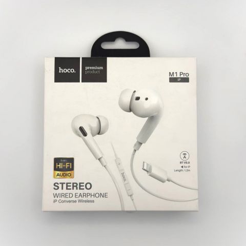 Гарнитура проводная Lightning Hoco M1 Pro Белый. Данная модель отличается от своих собратьев разъёмом Lightning для подключения к вашему устройству.
