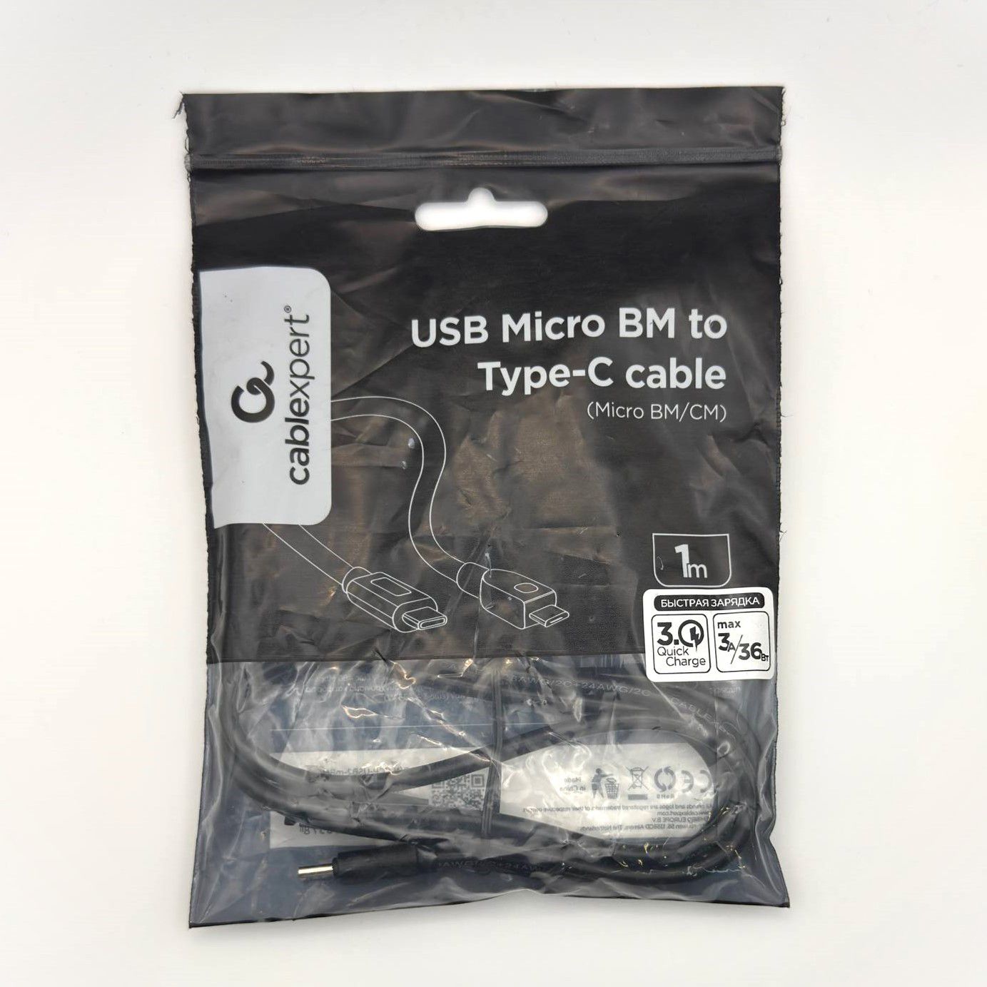 Кабель Type C - MicroUSB 1м Черный