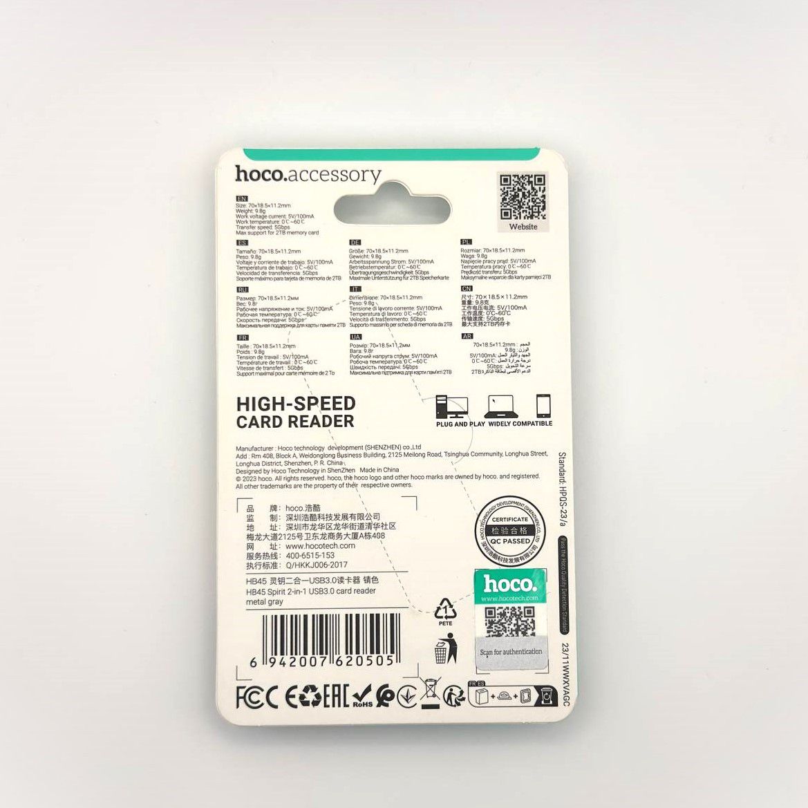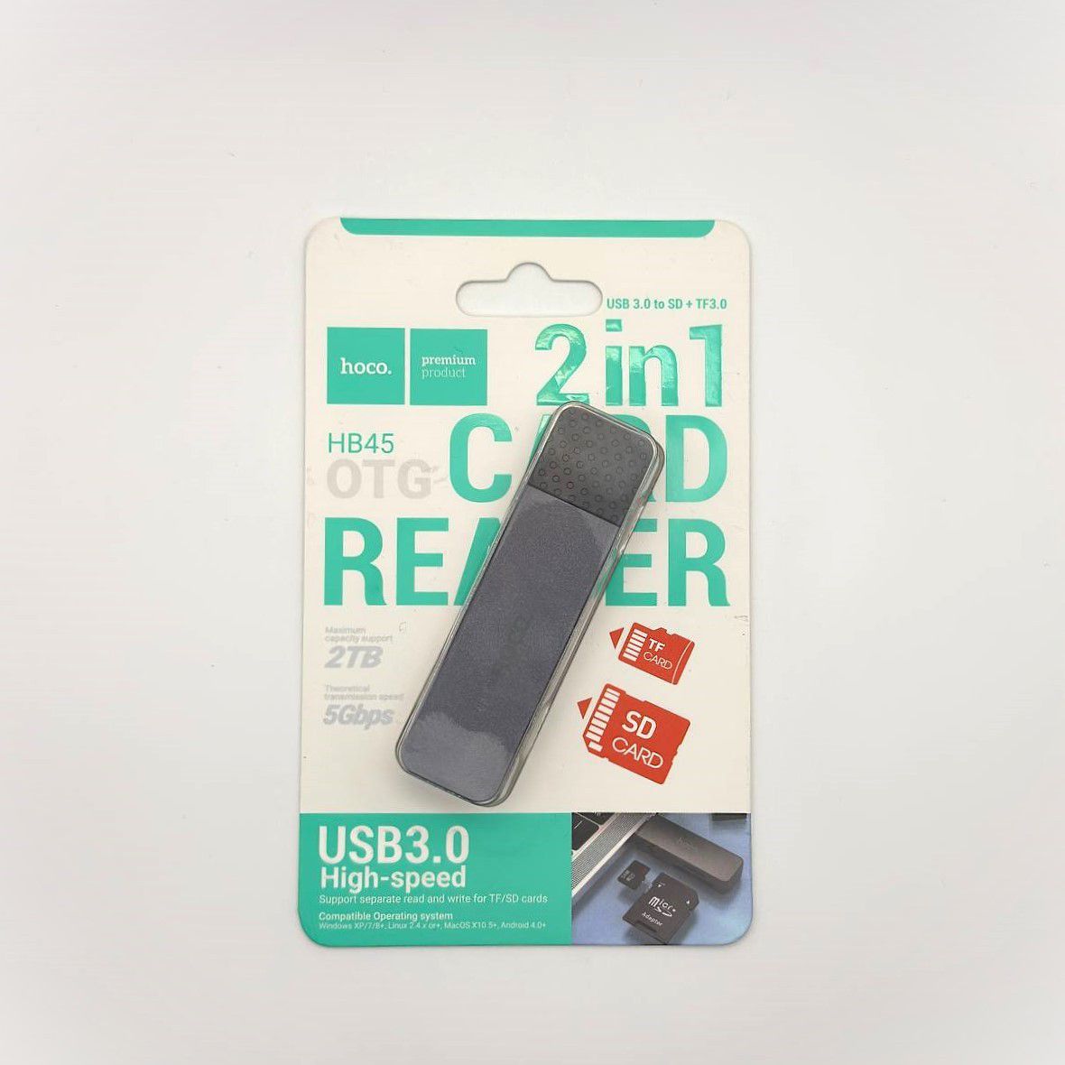 Карт-ридер Hoco HB45 (USB 3.0) — это компактное устройство для чтения и записи карт памяти SD и microSD (TF). Он оснащён разъёмами USB-A и USB Type-C, что обеспечивает совместимость с различными устройствами.