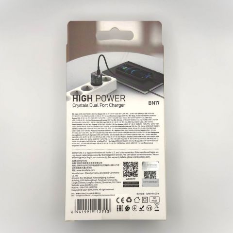 Borofone BN17 — компактное и надежное сетевое зарядное устройство с одним портом USB, которое обеспечит быстрым питанием ваши мобильные устройства. Идеально подойдет для зарядки смартфонов, планшетов и других аксессуаров с USB-интерфейсом.