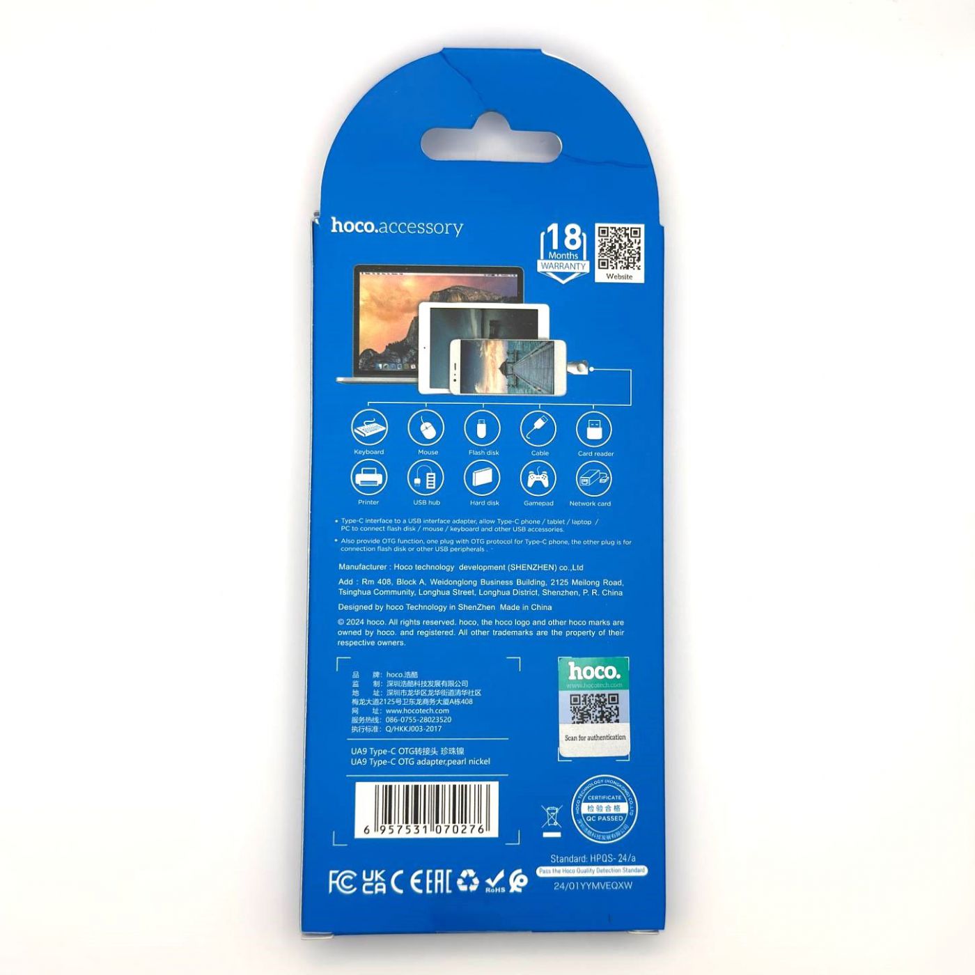 Адаптер Type-C — OTG Hoco UA9 в серебристом цвете — это компактный переходник, который позволяет подключать USB-устройства (флешки, клавиатуры, мыши, принтеры и др.) к смартфонам, планшетам и компьютерам с разъёмом Type-C. Он поддерживает технологию OTG, что расширяет функциональность устройств.