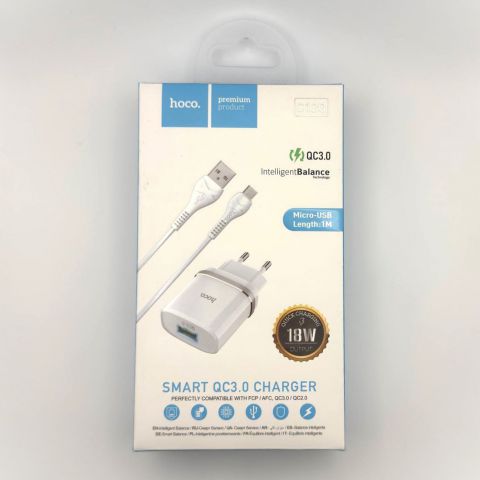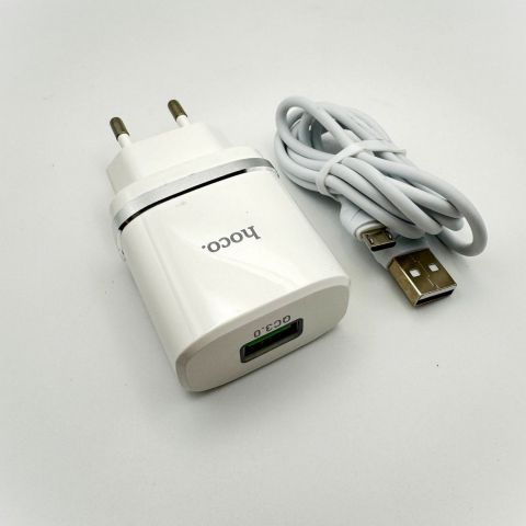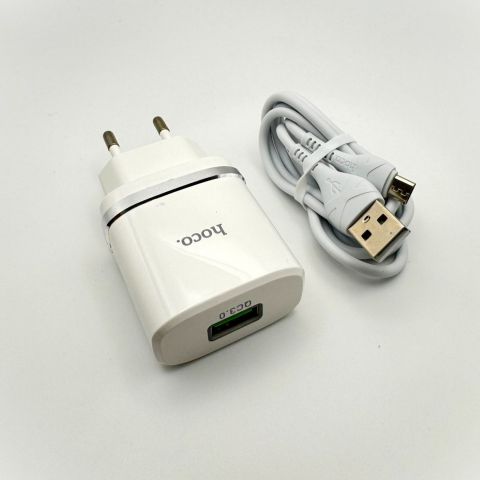СЗУ USB Hoco C12Q (кабель MicroUSB) Белый