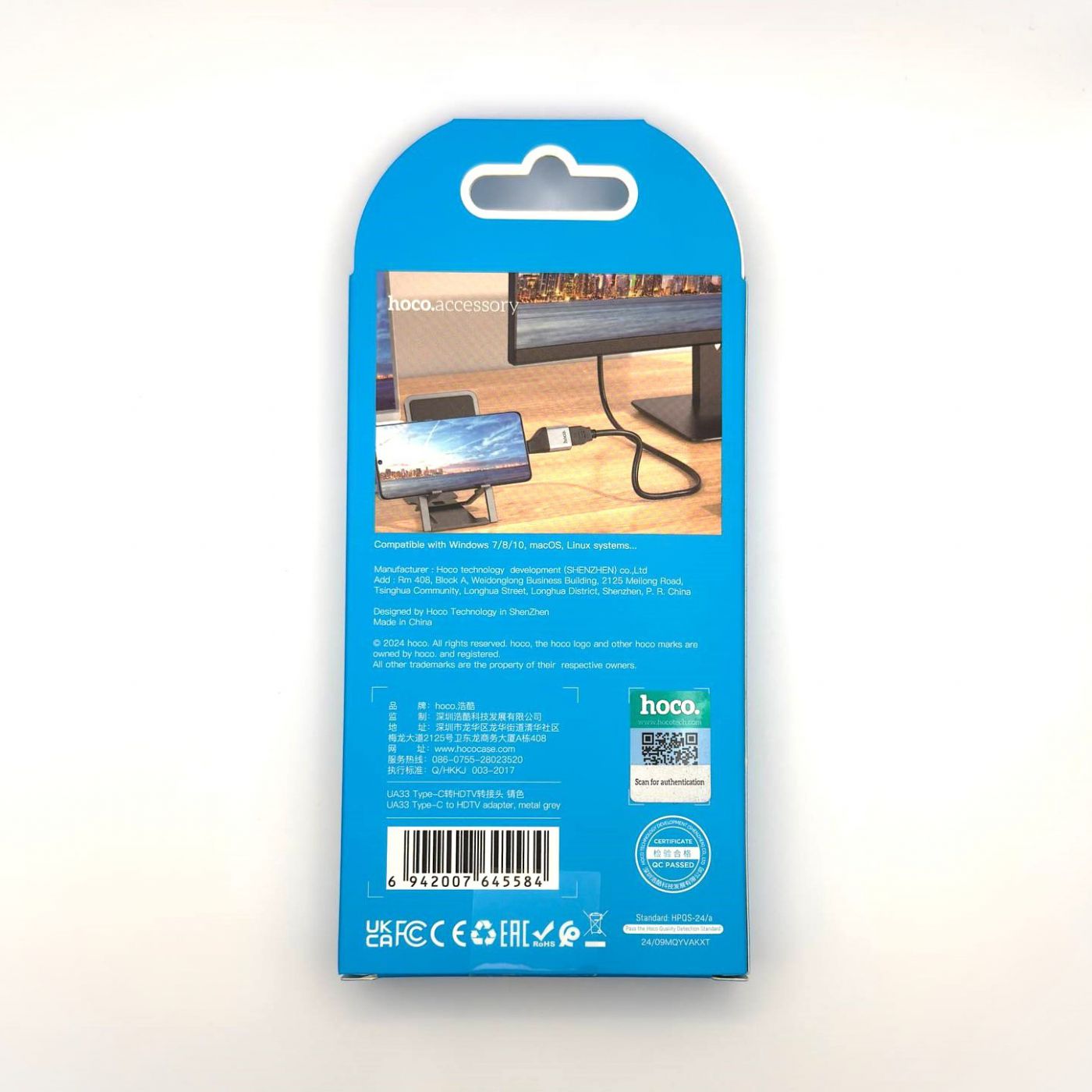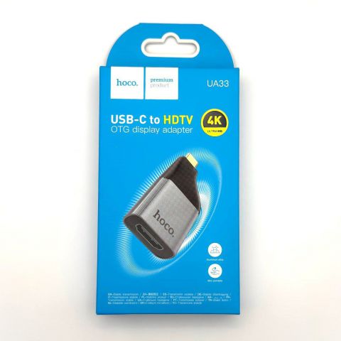 Адаптер Hoco UA33 (Type-C to HDMI) серого цвета — это компактный переходник, который позволяет подключать устройства с разъёмом USB Type-C к телевизорам, мониторам или проекторам через HDMI. Он поддерживает разрешение 4K при частоте 30 Гц и обеспечивает передачу видео и аудио без необходимости установки дополнительных драйверов.