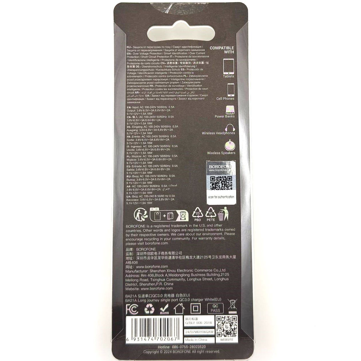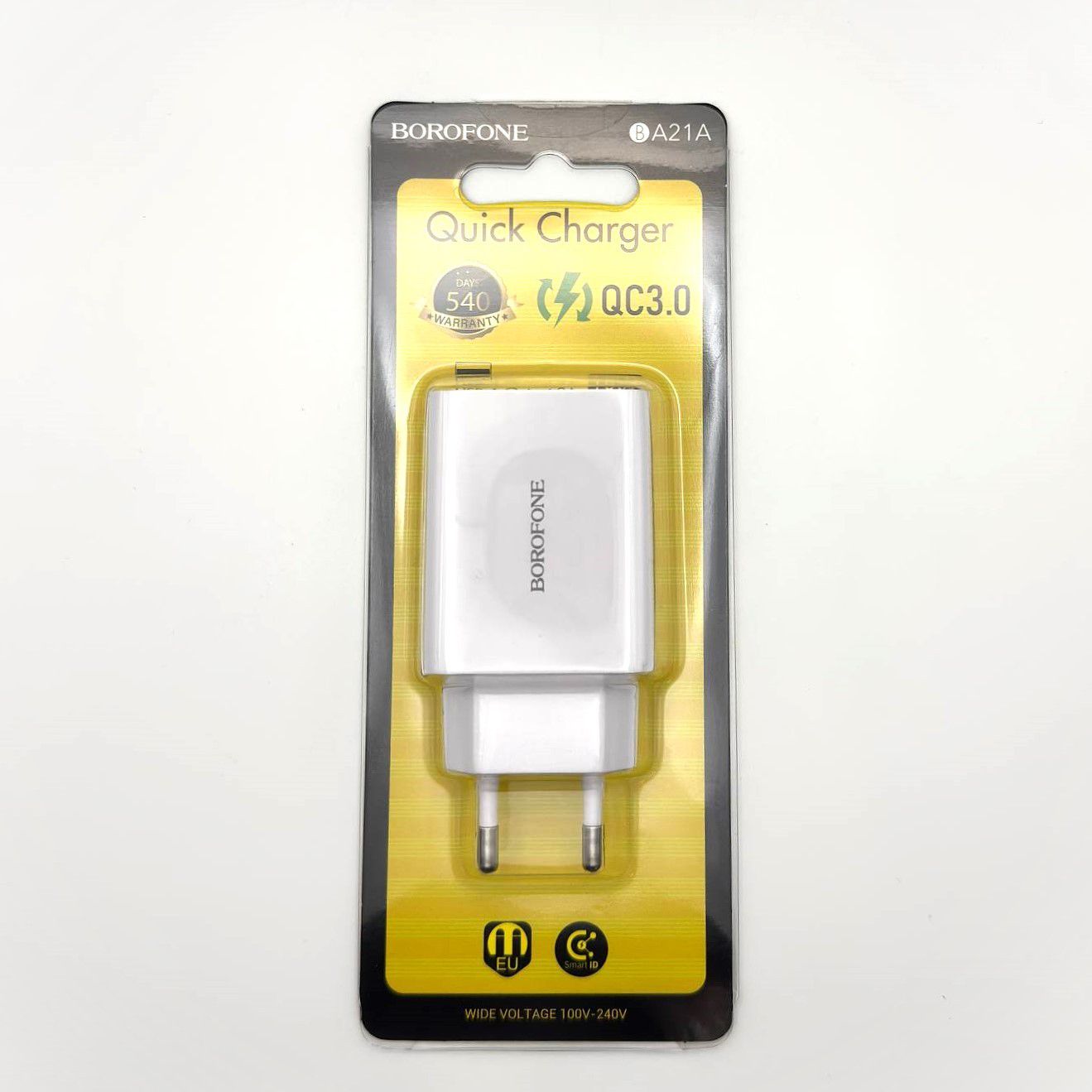 Универсальное зарядное устройство марки Borofone BA21A, выполненное в стильном белом цвете.