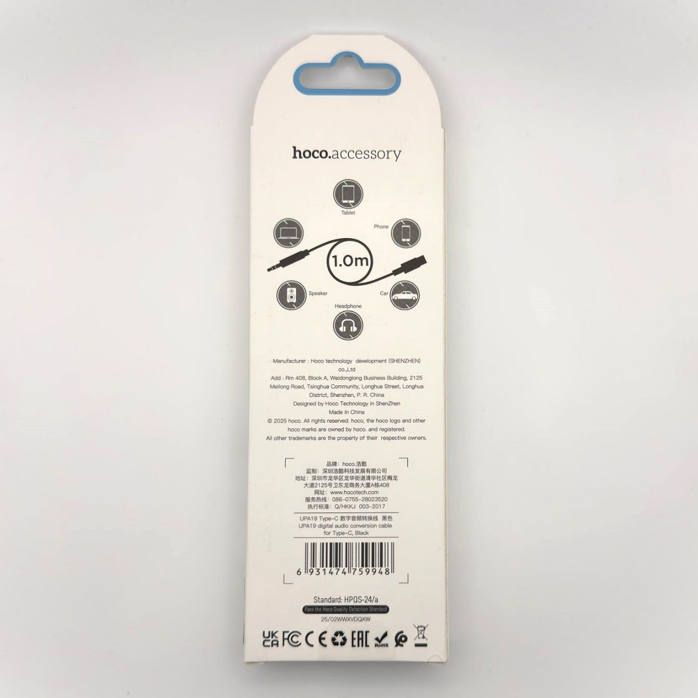 Кабель AUX - Type-C Hoco UPA-19 Черный