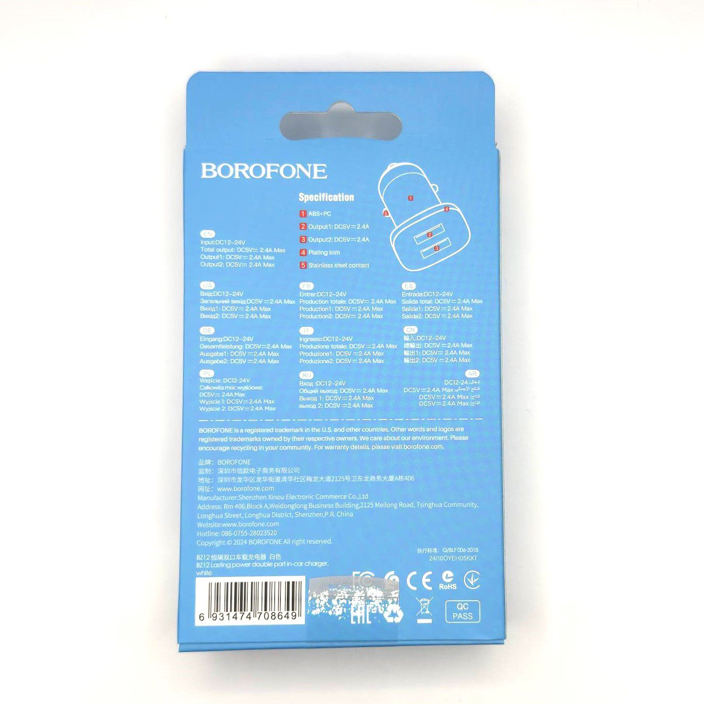 Ищете простое и эффективное автомобильное зарядное устройство? Borofone BZ12 – это компактное АЗУ с двумя портами USB, которое позволит вам заряжать два устройства одновременно в дороге. Надежный и удобный, этот адаптер станет отличным выбором для любого автомобиля.