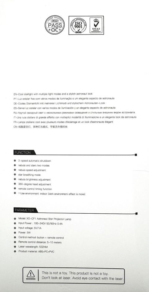 - Проецирование реалистичного изображения звёздного неба на потолок и стены комнаты.