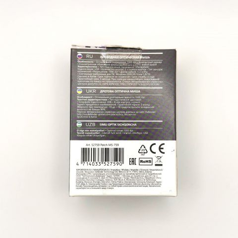 Черная проводная компьютерная мышь Defender Patch MS-759 создана специально для тех, кто ценит простоту, качество и стабильность в повседневных рабочих задачах.