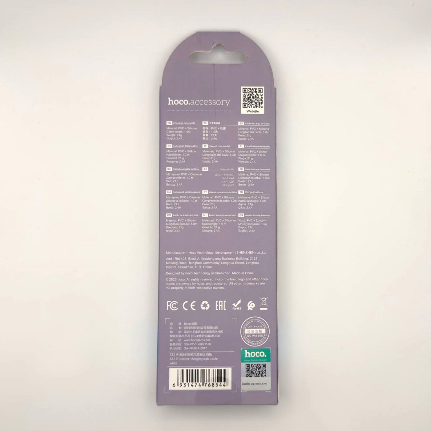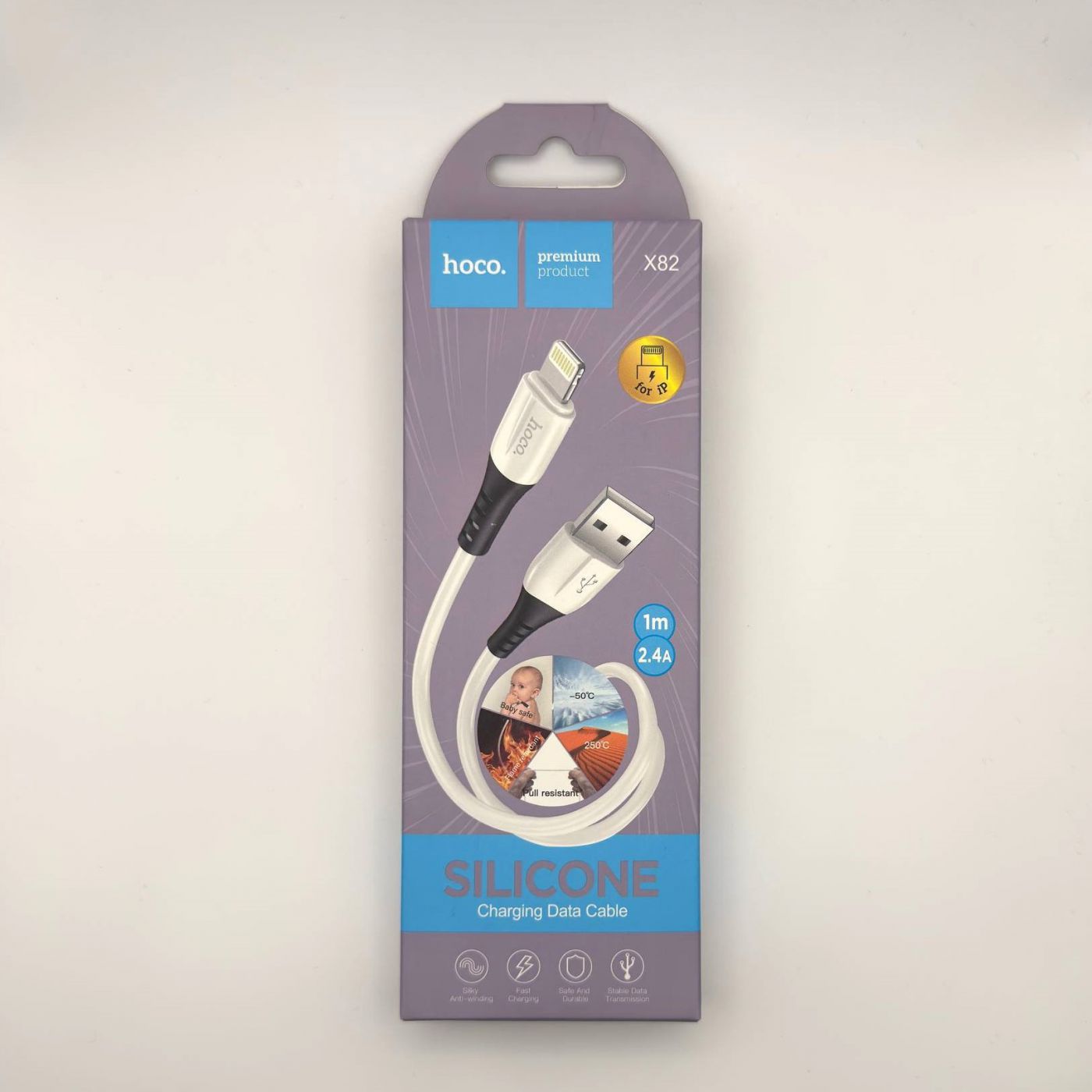 Кабель USB - Lightning Hoco X82 (2.4А, оплетка силикон, термостойкий) Белый
