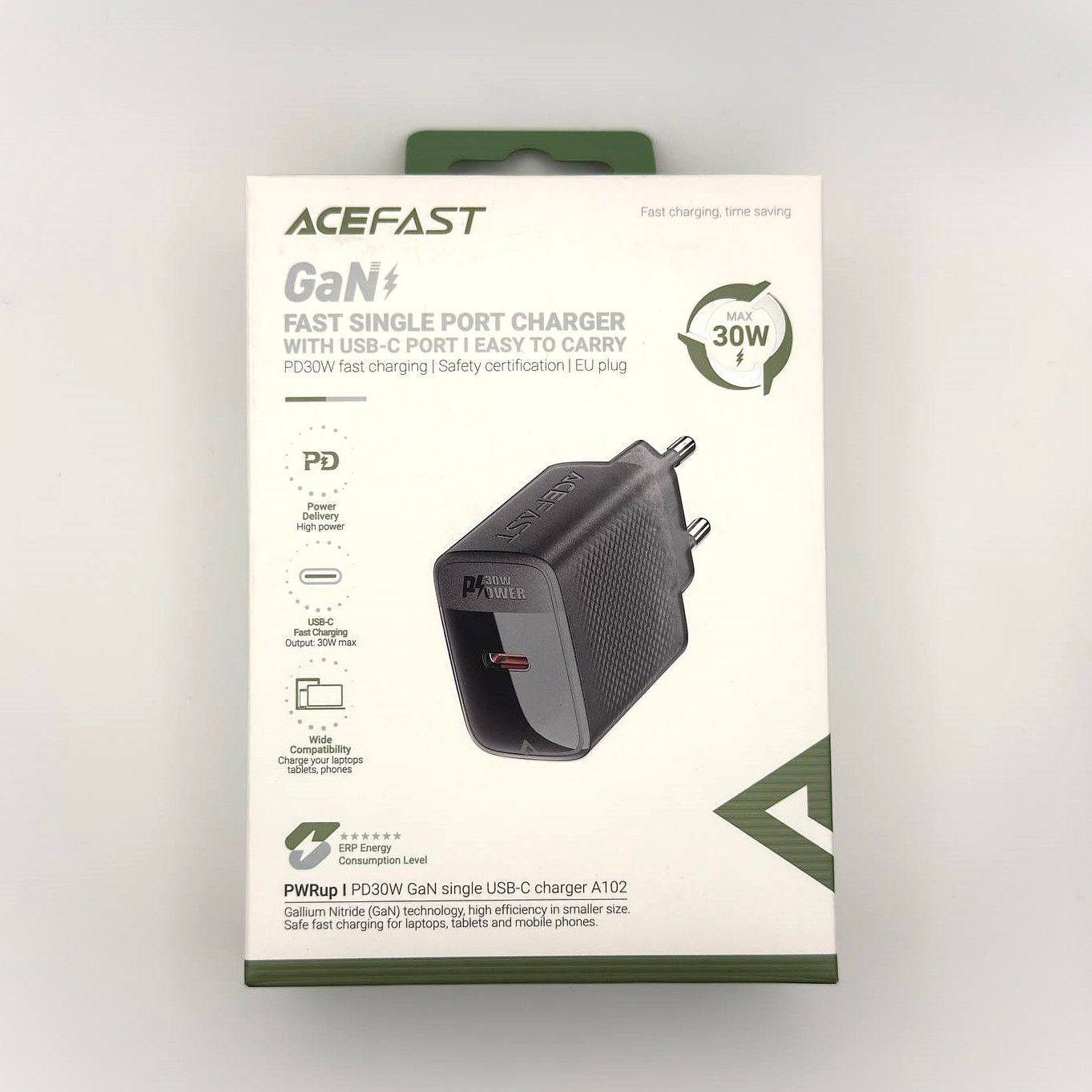 Высокоскоростное зарядное устройство Acefast A102 с поддержкой технологии Power Delivery (PD) и инновационным материалом GaN обеспечивает быструю и эффективную зарядку устройств с разъемом USB Type-C. Модель оснащена компактным дизайном и мощным функционалом, позволяя заряжать смартфоны, планшеты и ноутбуки значительно быстрее обычных адаптеров питания.