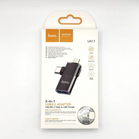 Адаптер Hoco UA17 — это многофункциональный переходник, который позволяет подключать устройства с разъёмом Lightning к устройствам с разъёмом Type-C, а также поддерживает функцию OTG для работы с внешними накопителями и периферийными устройствами. Он предназначен для использования с iPhone, iPad и другими устройствами Apple, поддерживающими разъём Lightning