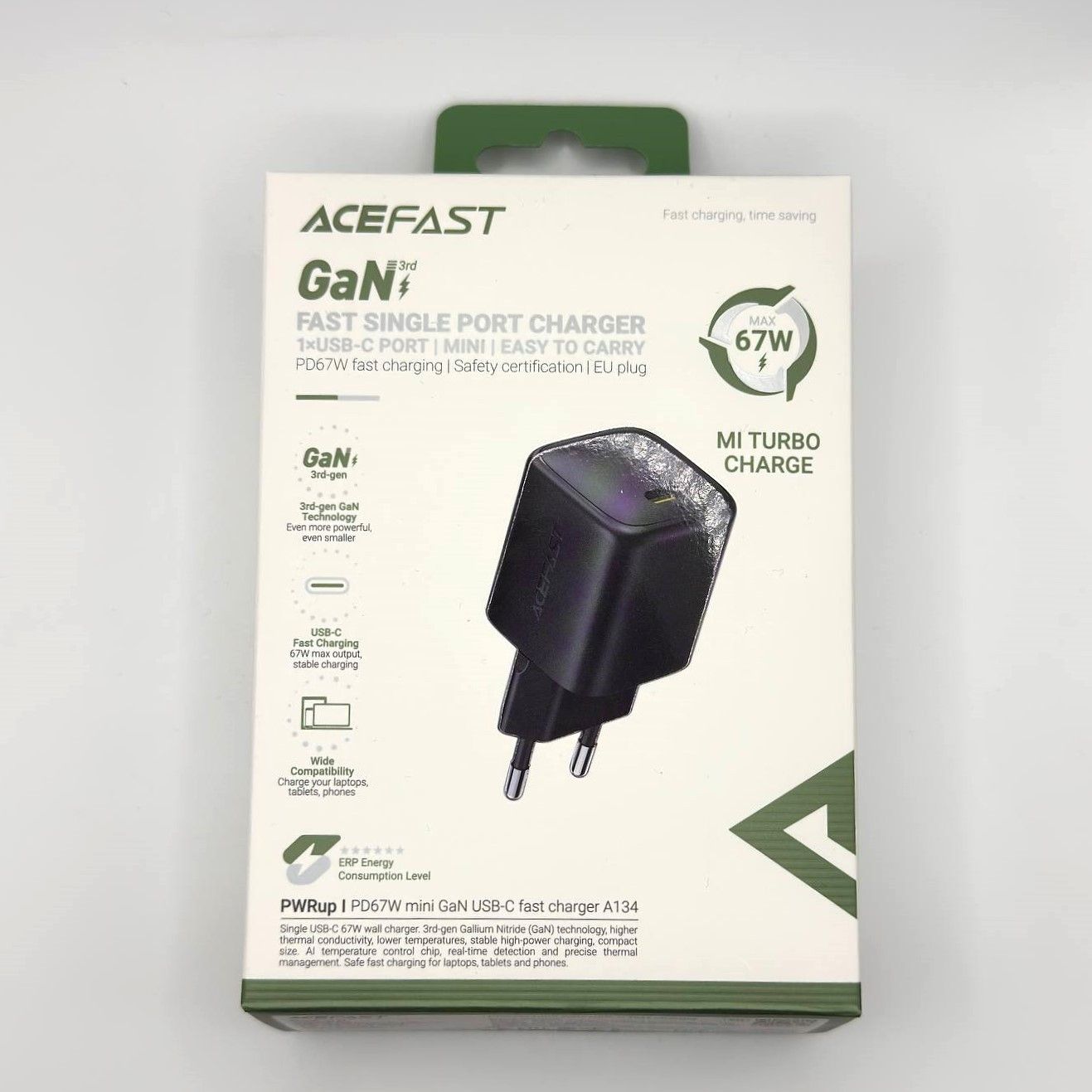 Acefast A134: Раскройте потенциал быстрой зарядки с GaN-технологией 67W PD.