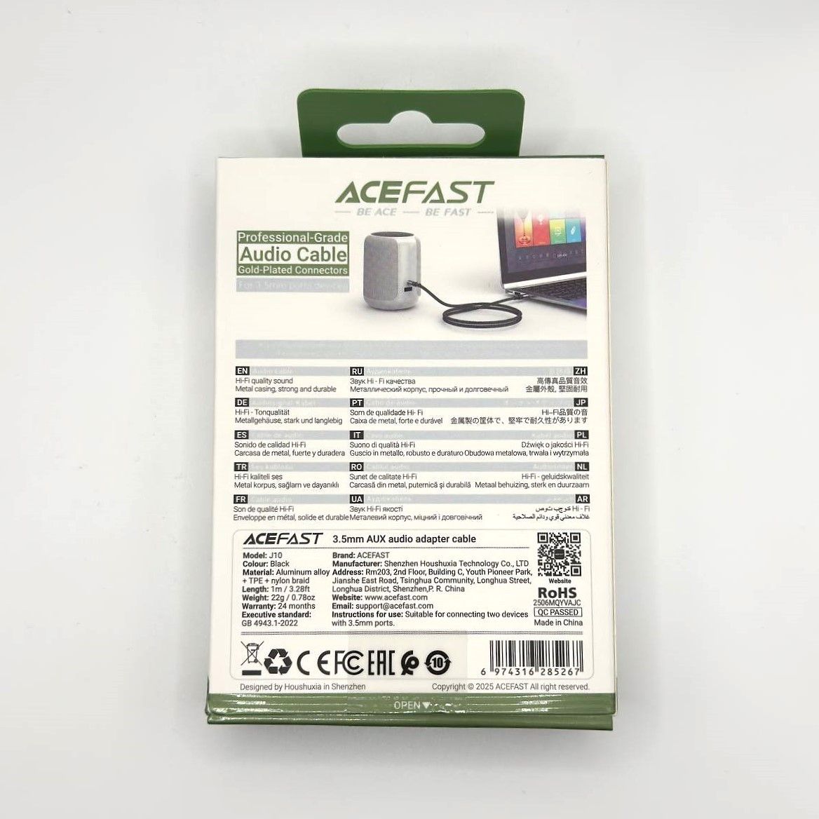 Acefast J10: Универсальный AUX кабель (1 м) для безупречного звука. Черный.
