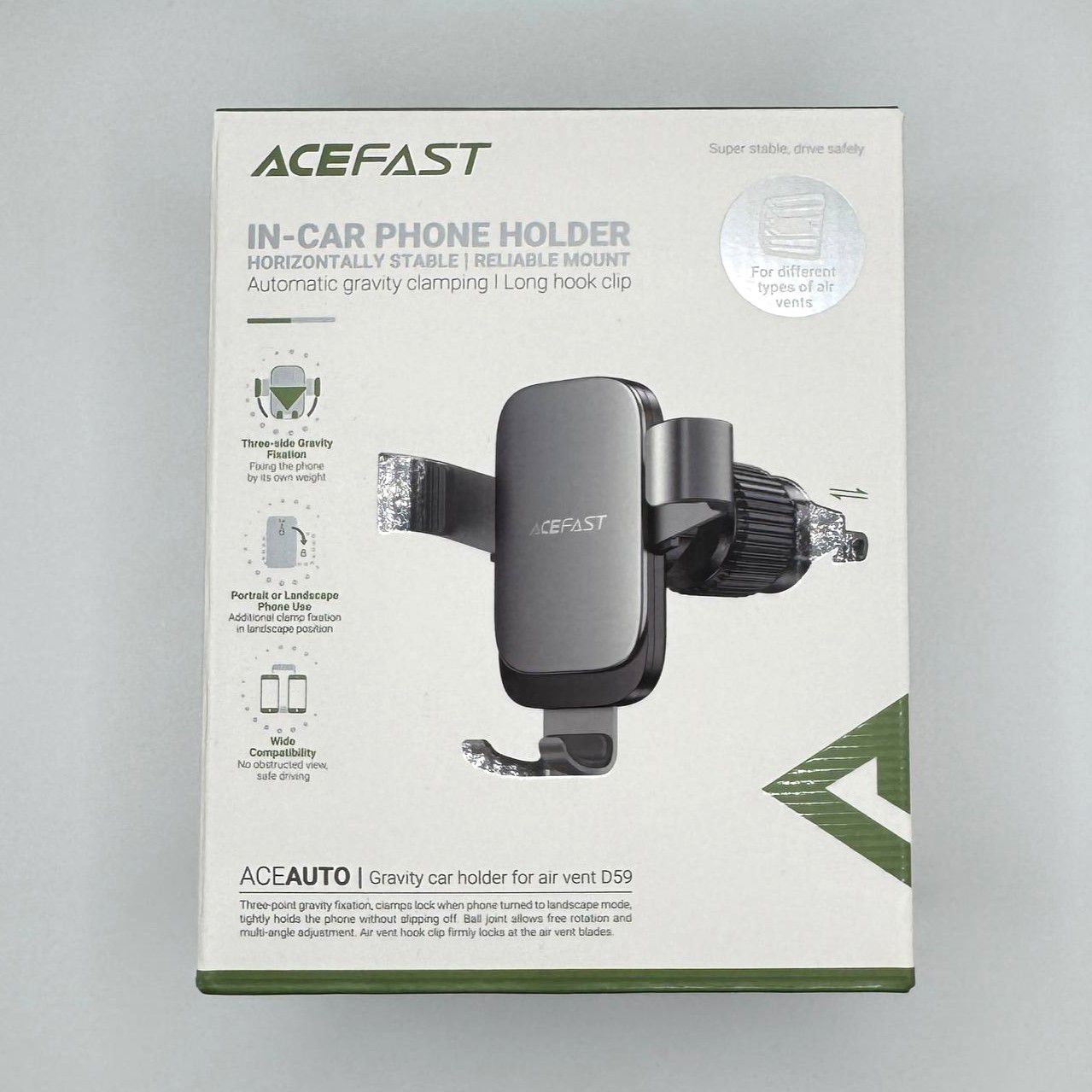 Acefast D59: Умное решение для вашего смартфона в автомобиле! Раздвижной держатель в дефлектор, серый.