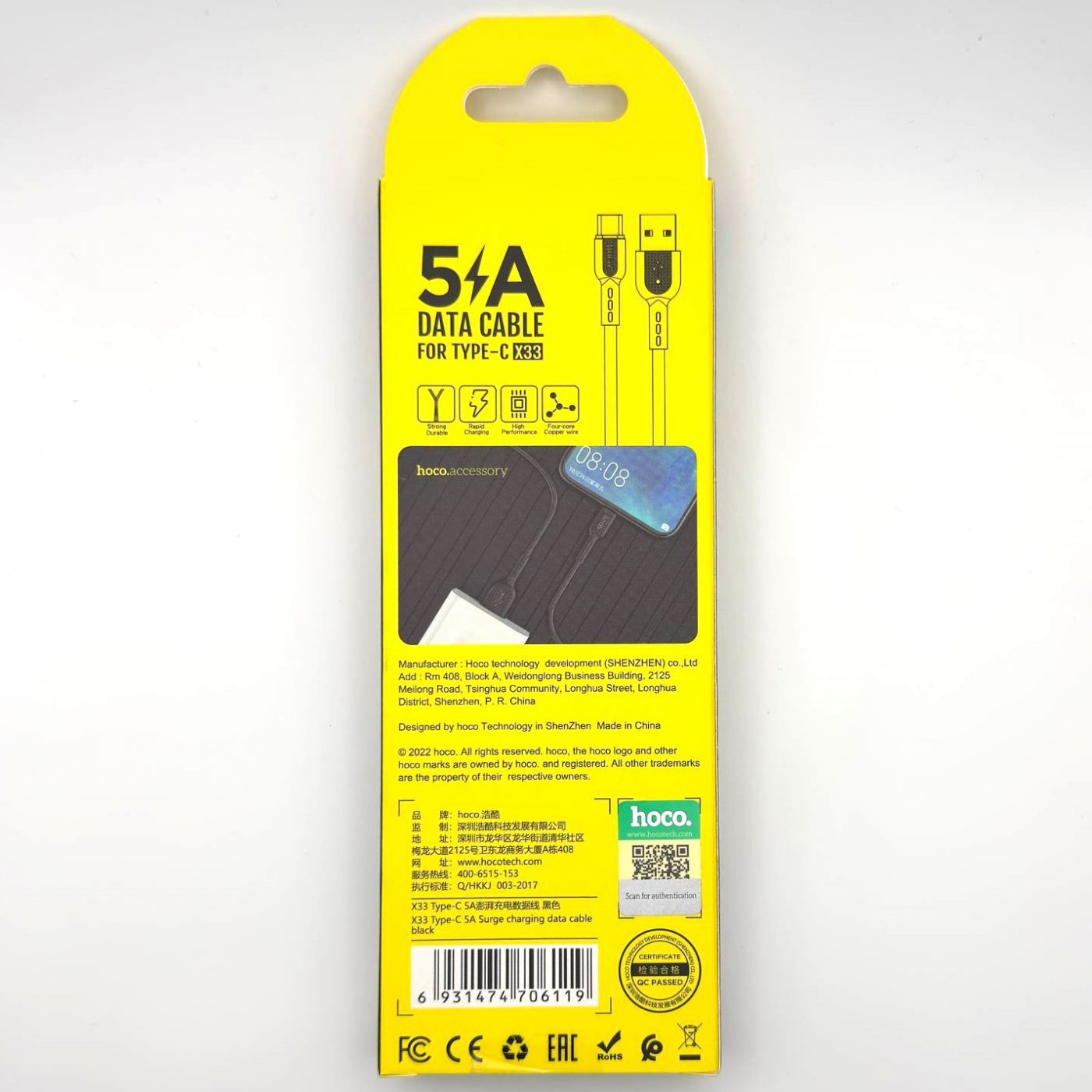 Кабель USB - Type-C Hoco X33 (5A) черный