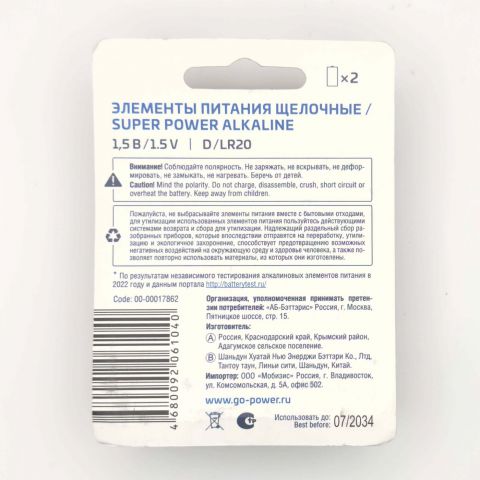 Почему стоит выбрать GoPower Super Alkaline D LR20?