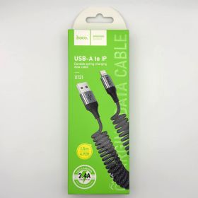 Кабель USB - Lightning Hoco X121 (2.4А, 1.5 м, пружина) Черный